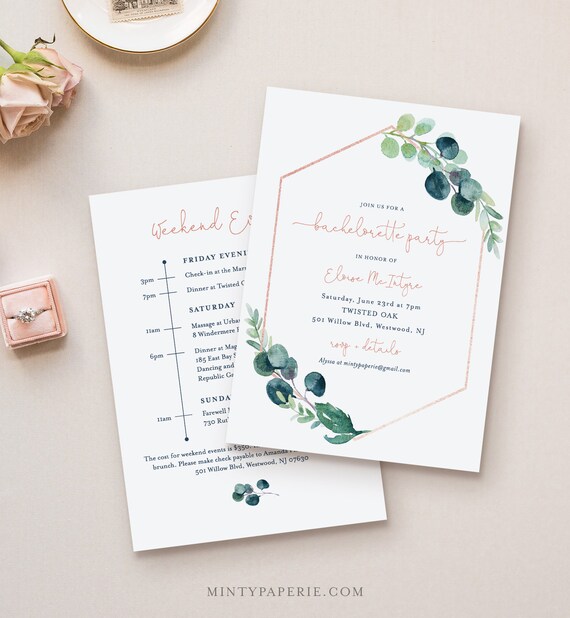Greenery Bachelorette Invitation Itinerary Timeline Etsy